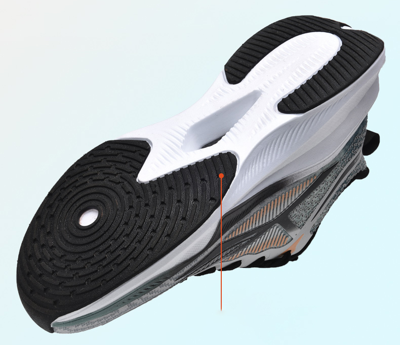 Tennis trainers feature a lightweight and flexible MD (Micro-Density) out-sole that provides propulsion and rebound for running.The MD out-sole used in these tennis trainers is designed to be lightweight, allowing for effortless movements and reducing fatigue during running. The material used in the out-sole offers a balance between durability and flexibility, ensuring optimal performance on the tennis court. The out-sole is specifically engineered with a clear and defined tread pattern. This pattern is strategically designed to enhance traction and grip on various court surfaces. The flexibility and clear tread pattern contribute to improved stability, control, and maneuverability during intense gameplay, allowing tennis players to confidently execute quick movements and maintain optimal performance on the court.